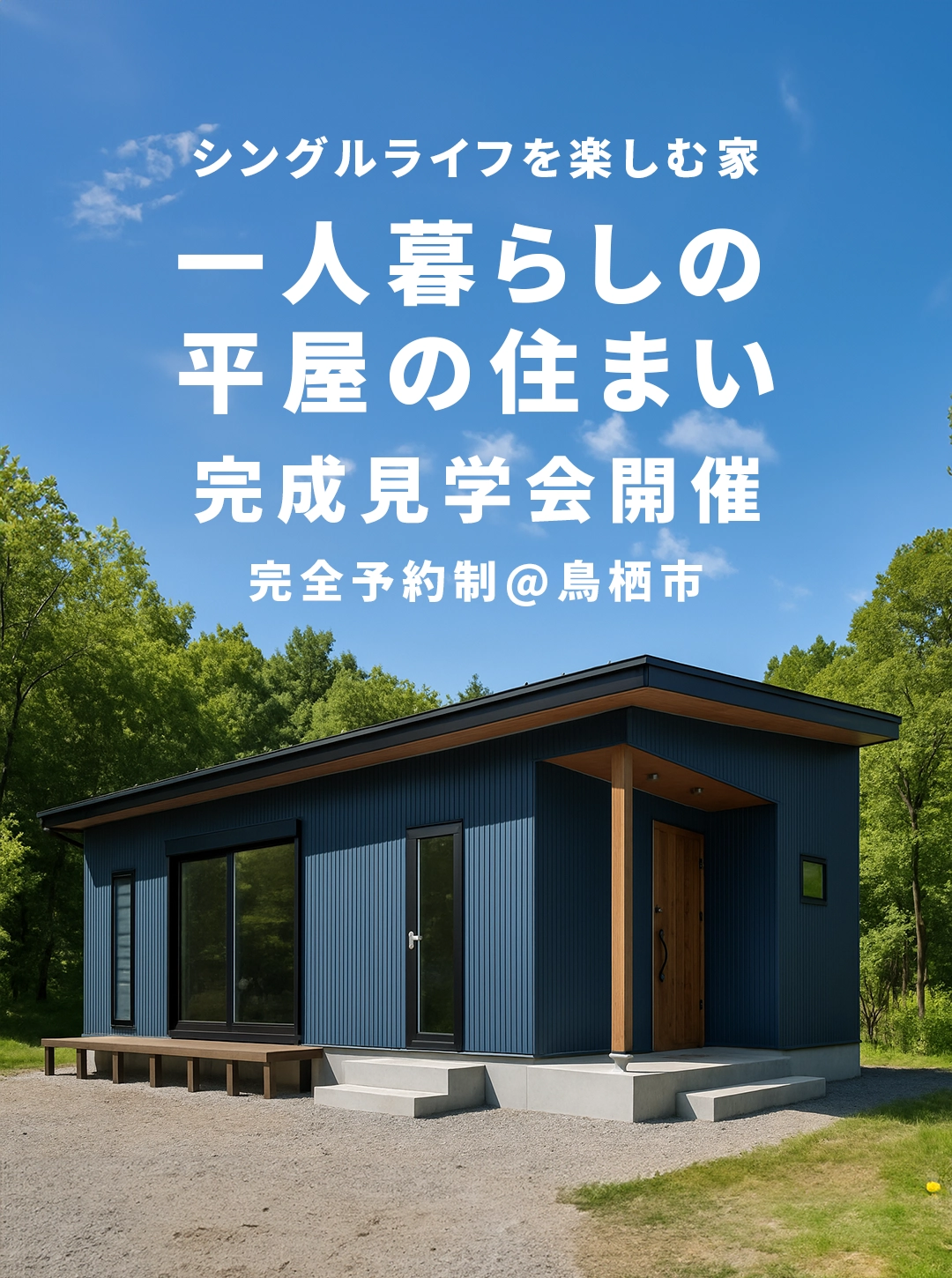 ウィズカーペンターでは佐賀県鳥栖市にて、「シングルライフを楽しむ家 一人暮らしの平屋の住まい完成見学会」を開催します。