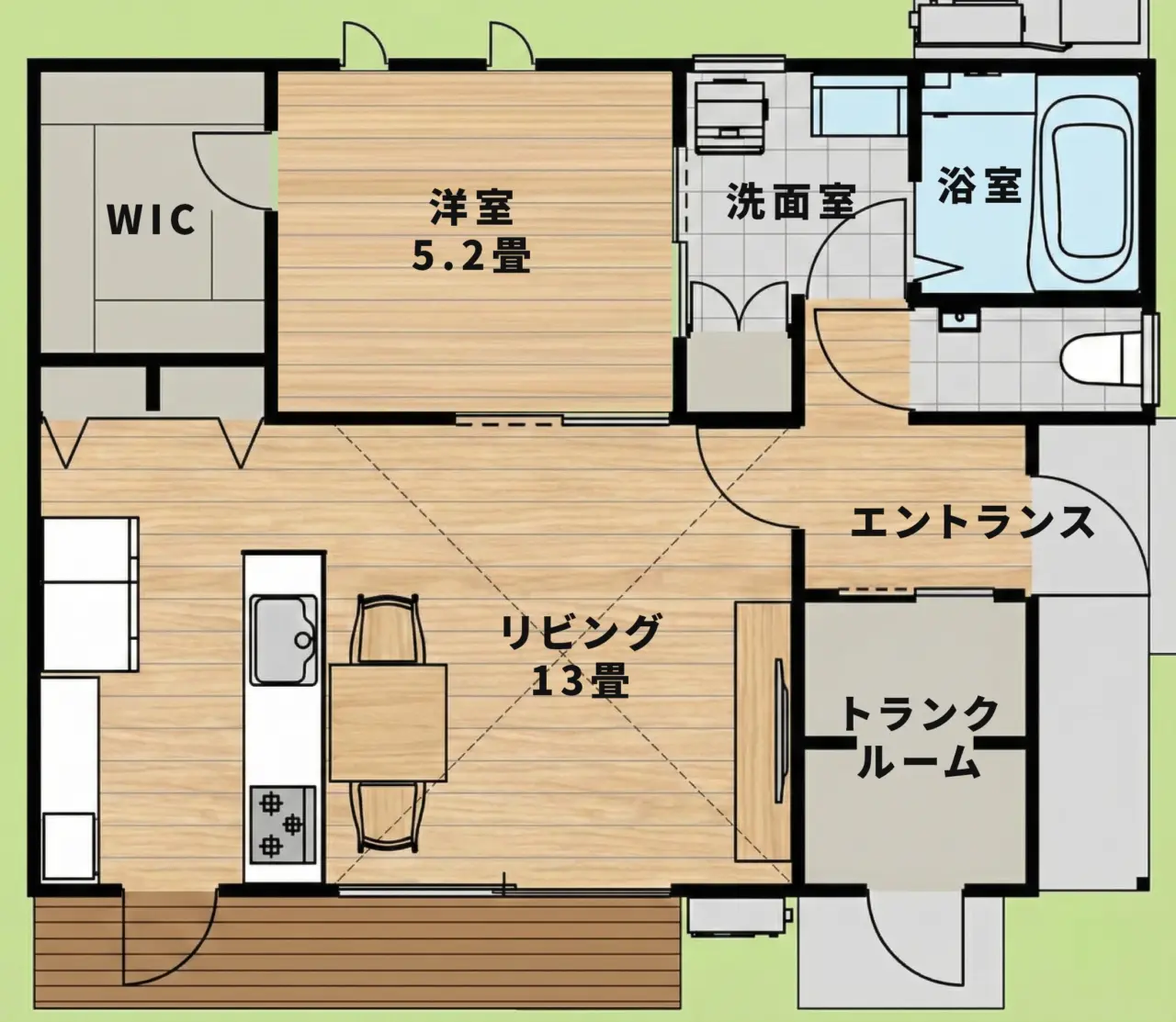 一人暮らしに最適な、コンパクトで移動距離も短く、かつ収納もたっぷりご用意。
