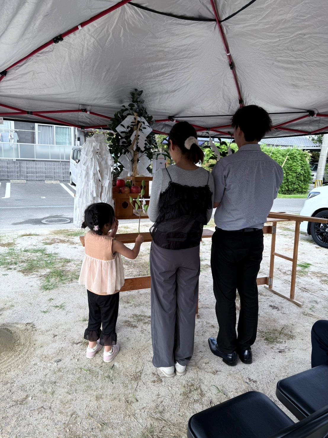 天候にも恵まれ、施主様ご家族とご一緒に、工事の無事と安全を祈願することができました。