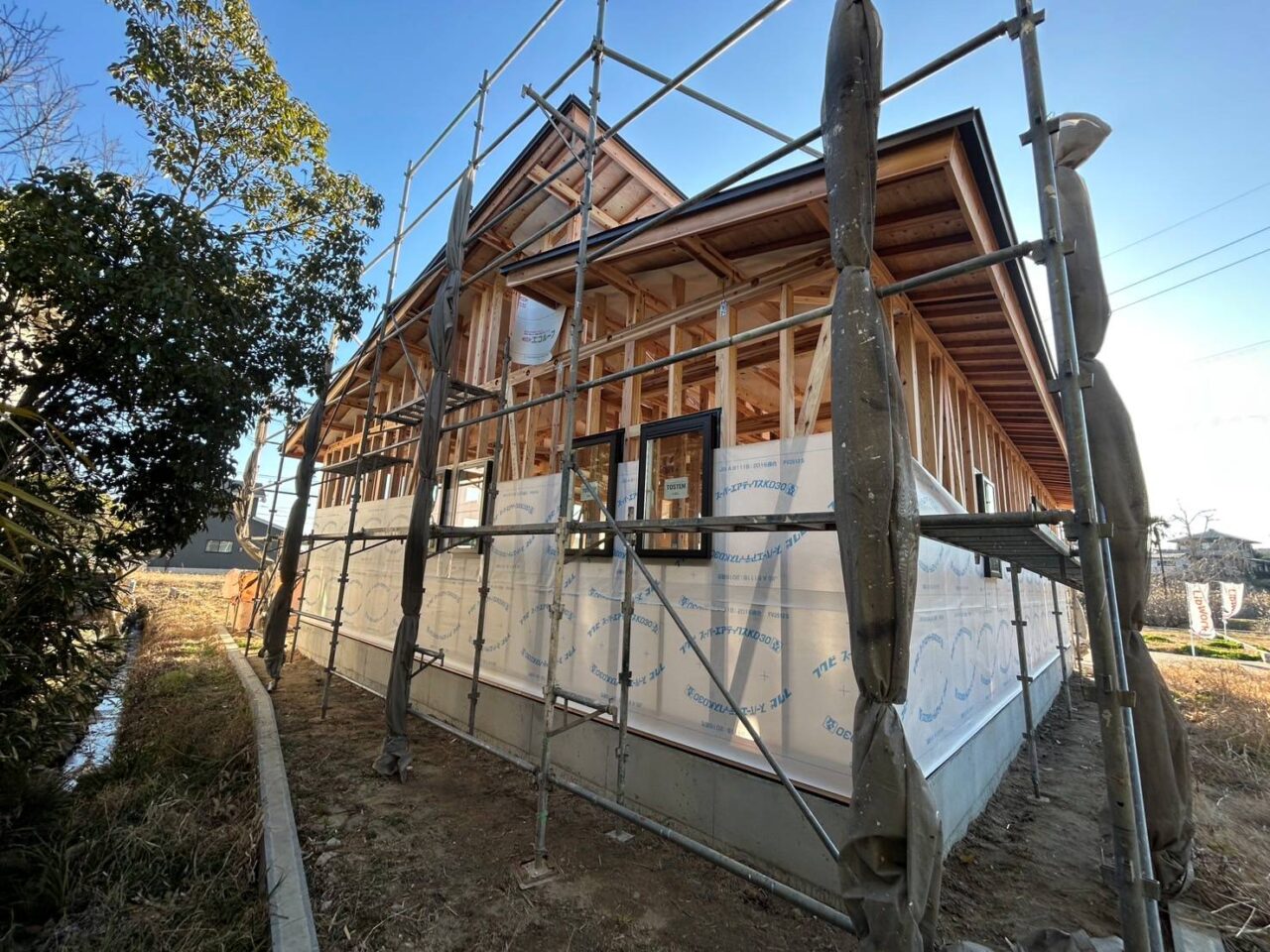 朝は、まだ静かだった現場が大工さんたちの掛け声とともに一気に動き出しました。これまで何度も打ち合わせを重ね、図面の中で描いてきた住まいが今日形になりました。これからも、丁寧に、確実に、完成へと進めてまいります。