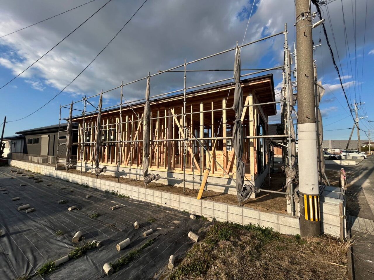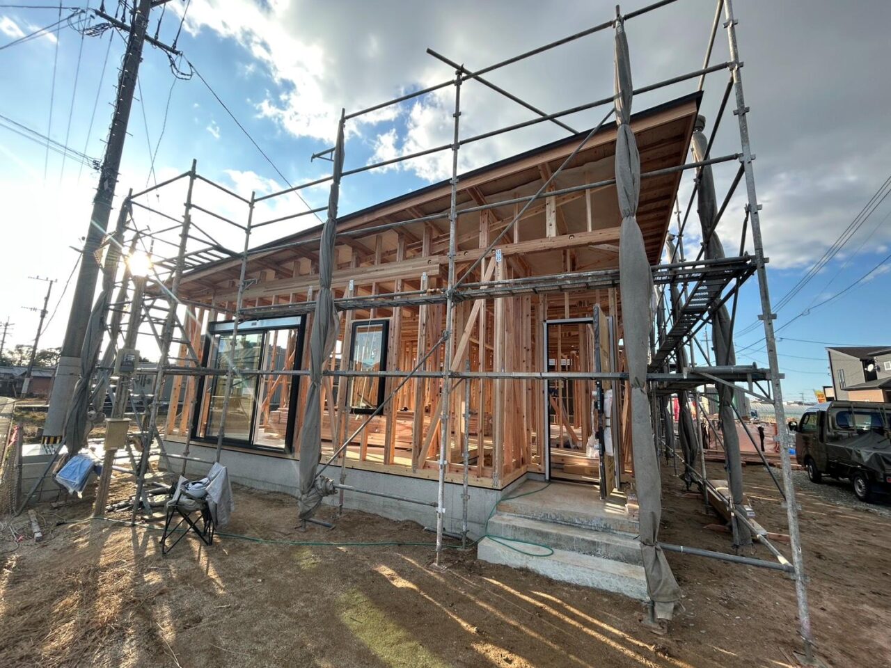 朝から大工さんたちの息の合ったチームワークで、みるみるうちに住まいの形が現れてきました。図面で見ていたお家が立体的になる瞬間は、何度経験しても感動します。